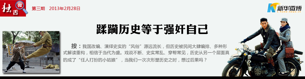@水天:一90后女生為最新版《笑傲江湖》叫屈:“沒有于正,誰知道《笑傲江湖》?抄你,是你的榮幸,改你,是你的造化。沒有于正,我們永遠不屑于理睬金庸。”雖然金庸寫的不是史實,但可見一代代的”洗滌“必將物是人非,一摞教科書也難”矯枉“一部電視劇。