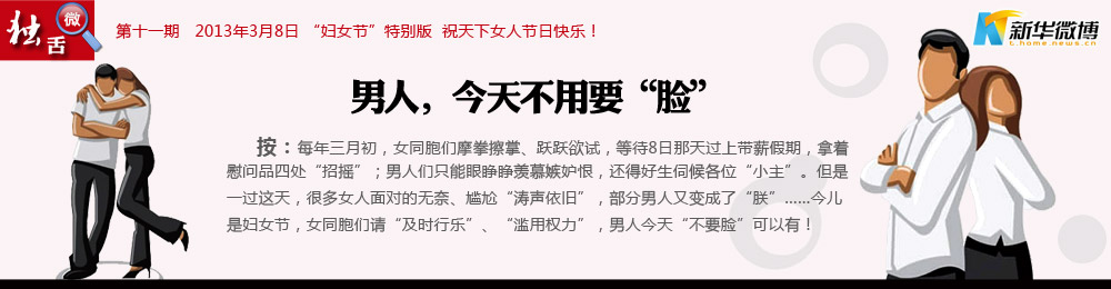 @蘄鄉(xiāng)農(nóng)夫: 在婦女節(jié)到來(lái)之時(shí),向長(zhǎng)期戰(zhàn)斗在試衣間,看韓劇,不做飯,魅力十足并掌握另一半錢包的杰出女性們致以節(jié)日的問(wèn)候。祝所有美女們:三圍魔鬼化,收入白領(lǐng)化,家務(wù)甩手化,快樂(lè)日?;?,愛情持久化,情調(diào)小資化,購(gòu)物瘋狂化,老公奴隸化,祝三八婦女節(jié)快樂(lè)!