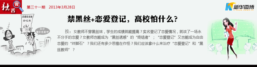 被“監(jiān)視”的別扭戀愛 畢竟談戀愛也是一個動態(tài)的過程,昨天還是在談,今天就分手了;而怎樣的談戀愛才可以夠得上“登記”;如果兩個人吵架了,不想再談了,是否要去取消?而不長的時間兩個人又合好了,難道又要去登記?如果兩個戀人吵架了,是否就要去找教師和解?被“監(jiān)控”的戀愛,那是一場多么別扭的戀愛。