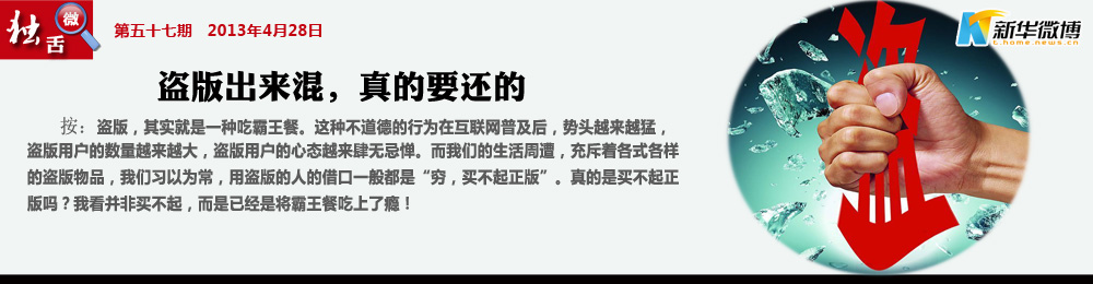 盜版、山寨其實(shí)有苦但難言 猖獗的盜版,低俗的山寨,無(wú)恥的借鑒。是被生活磨去了棱角,被現(xiàn)實(shí)澆熄了熱情,被名利迷失了心志,被成長(zhǎng)掩蓋了純真。
