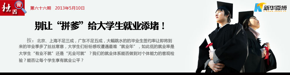 頭疼的畢業(yè)季 又到了一年一度的畢業(yè)季,千千萬萬莘莘學(xué)子翹首等待“就業(yè)”,但是這條就業(yè)之路有時候顯得并不是那么平坦,“拼爹”“拼錢”的存在讓窮人家的孩子出路更為狹窄。