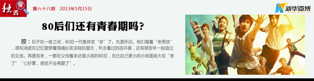 這就是80后 我們被關(guān)注,被評論,被標(biāo)簽……先是說80后叛逆,后來說80后沒有擔(dān)當(dāng),再后來三十不立?,F(xiàn)如今我們懷懷舊,就給你扣一頂“暮氣沉沉”的大帽子。