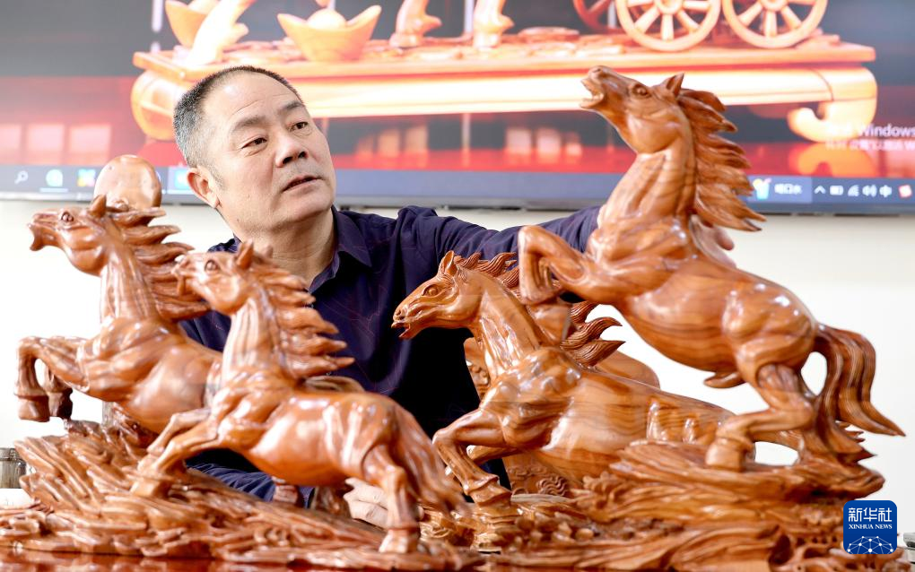 1月17日,在青岛市即墨区,山东省青岛市级非物质文化遗产代表性传承人王承厚创作马题材的榼子。