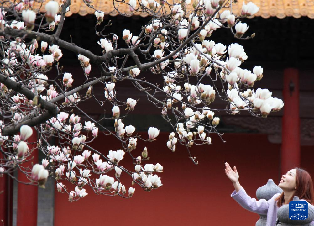 3月8日,游客在江苏南京朝天宫景区赏花。