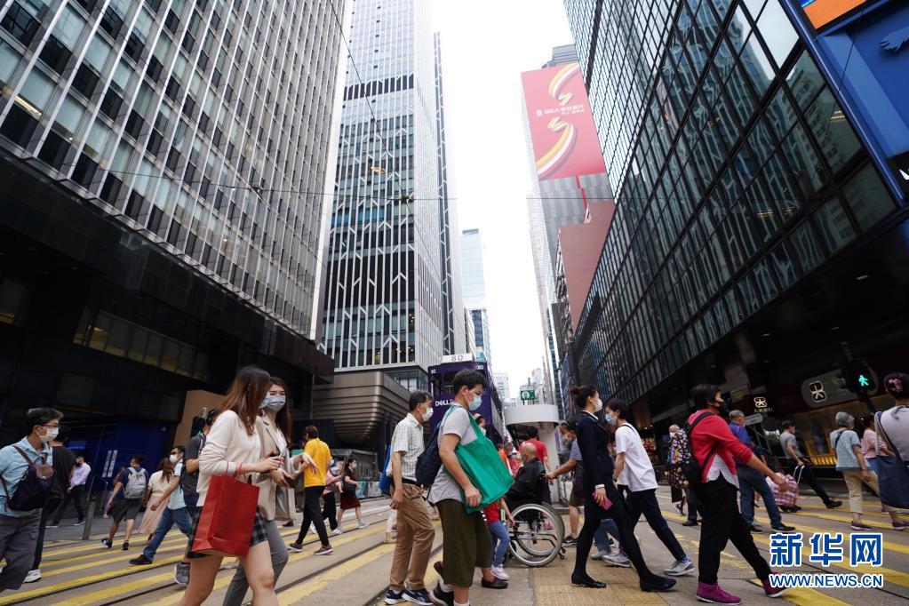 5月14日,市民在香港中環(huán)街頭過馬路。新華社記者 王申 攝
