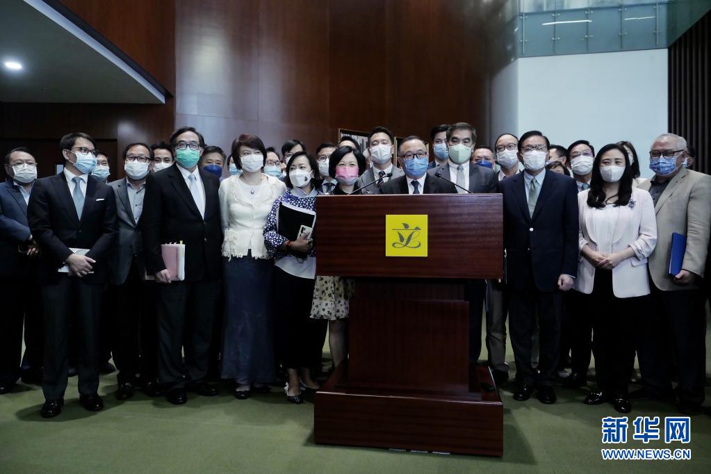5月27日,在香港特區(qū)立法會,建制派議員集體接受記者采訪。新華社記者 王申 攝