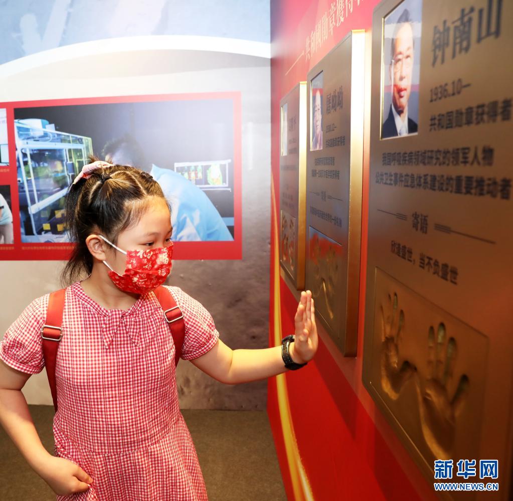 7月2日,一名女孩在“共和國勛章獲得者手?!钡恼拱迩皡⒂^。新華社記者 吳曉初 攝