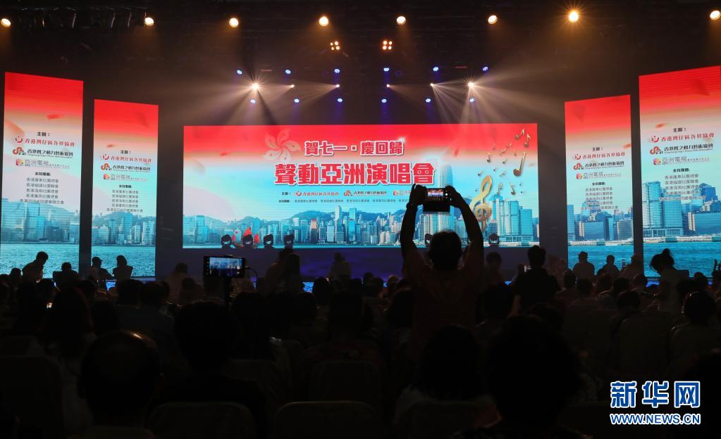 當日,由香港灣仔區(qū)各界協(xié)會、香港聲之動力藝術協(xié)會聯(lián)同亞洲電視舉辦的“賀七一·慶回歸”聲動亞洲演唱會,在亞洲電視1號錄影廠舉行。40多位香港歌手演繹了45首歌曲,與香港市民同慶。