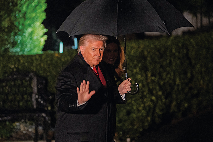 2025年11月25日,在美国首都华盛顿,美国总统特朗普离开白宫