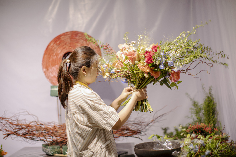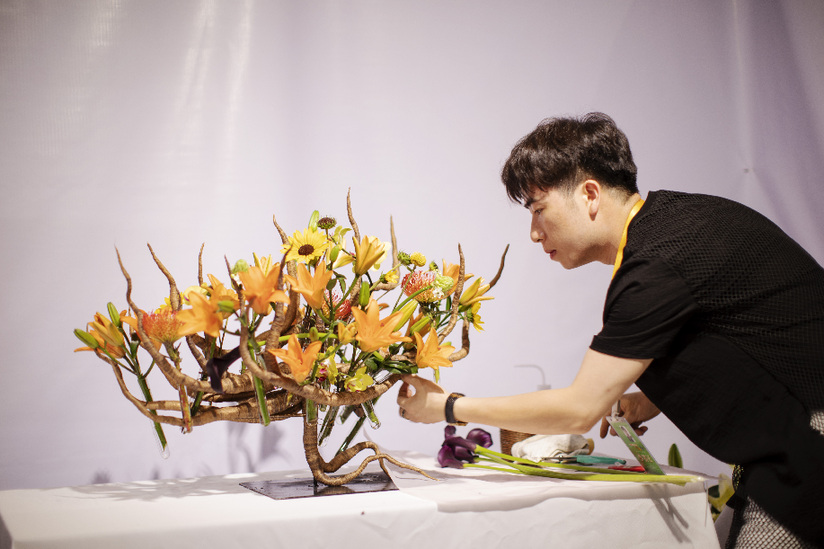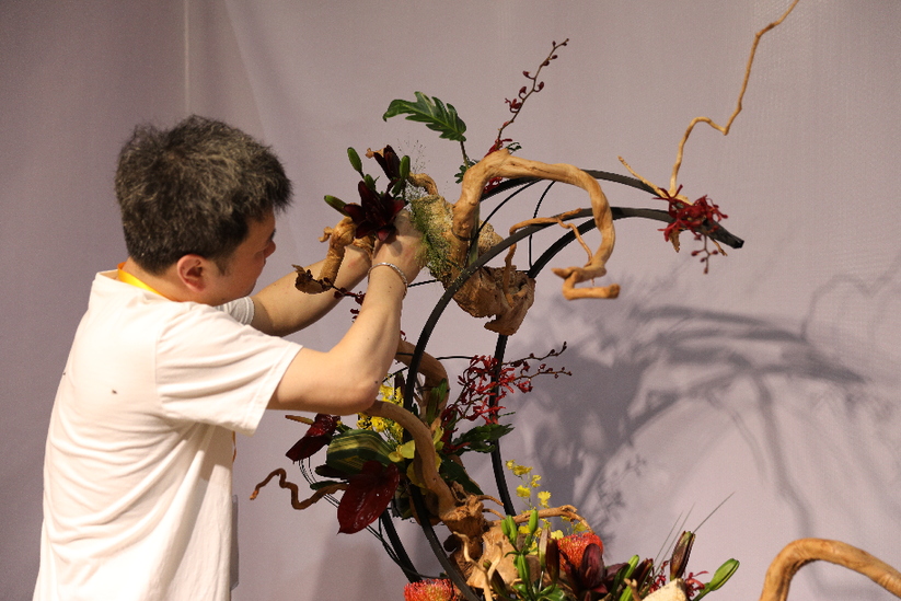 “輕攏慢捻抹復(fù)挑,插花也如琵琶語?!庇浾咴诂F(xiàn)場看到,選手們沉浸在插花藝術(shù)創(chuàng)作中,鮮花、枝葉在他們的手中經(jīng)過一番規(guī)整修剪,又如繪畫般慎重落下一抹畫筆,嬌艷綻放的鮮花在新的布局下,逐漸呈現(xiàn)出定格的自然之美、線條之美與意境之美,花藝設(shè)計(jì)本身的創(chuàng)作過程,就是一場賞心悅目的藝術(shù)呈現(xiàn),人和花交流的過程,也會(huì)讓人們更加能夠體會(huì)到生命的真實(shí)與絢爛。