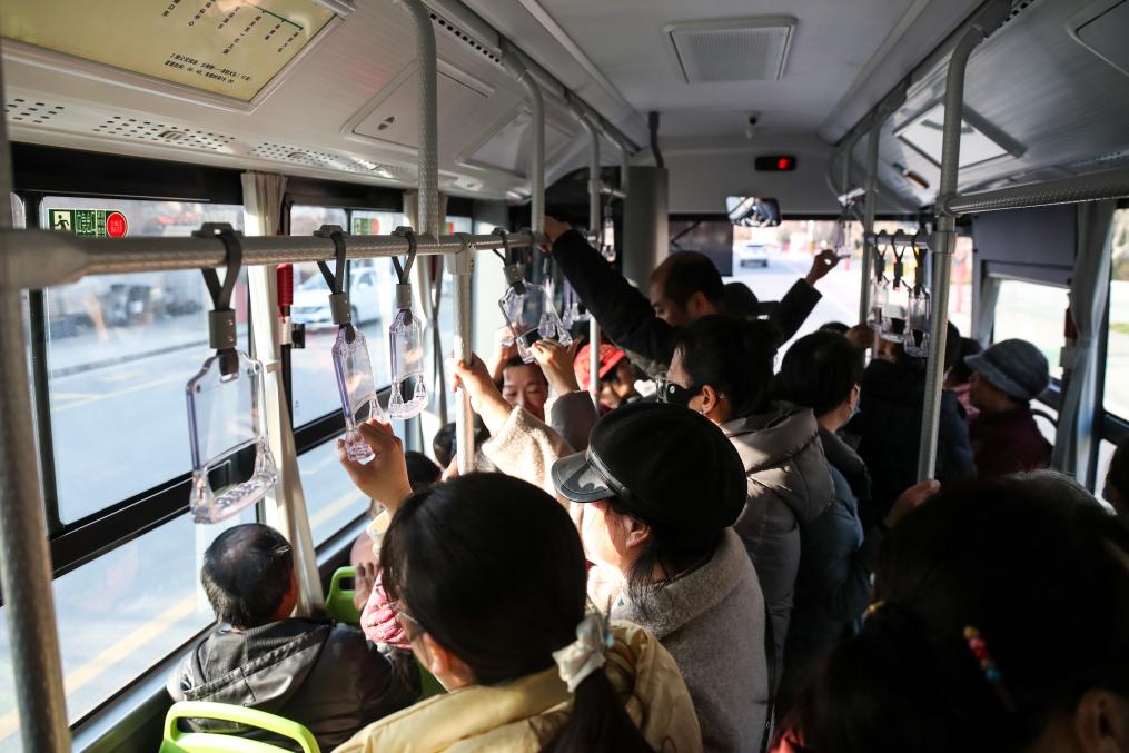 在甘肃省陇南市两当县,群众乘坐免费公交车出行。新华社记者 郎兵兵 摄