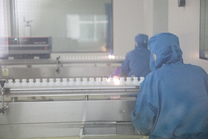 生產車間內,工人正在對藥品進行加工