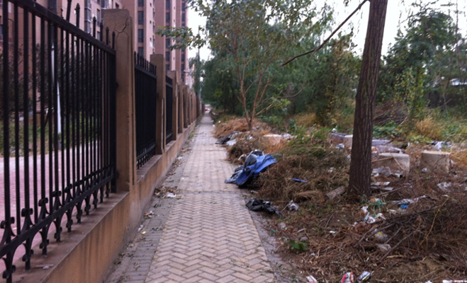 當(dāng)記者走到小區(qū)的北面,發(fā)現(xiàn)小區(qū)圍欄較矮,很容易翻過柵欄進入到小區(qū),并且沒有看到監(jiān)控設(shè)備,小區(qū)后面雜草叢生,由于長時間無人清理,儼然變成了垃圾場。