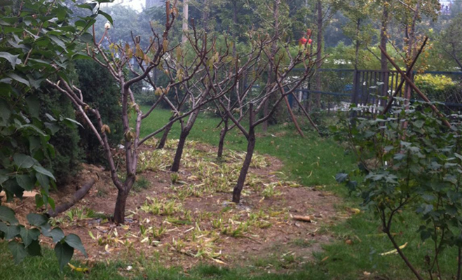 另外記者還發(fā)現(xiàn)在小區(qū)內(nèi)有多個(gè)區(qū)域的綠植出現(xiàn)了枯死,在簇簇濃綠之中格外扎眼。據(jù)社區(qū)內(nèi)的一位業(yè)主介紹,這種情況每年都會(huì)出現(xiàn)(該項(xiàng)目入駐時(shí)間為2008年)。就在調(diào)查期間,一棟樓的門口位置圍著幾名身著物業(yè)人員。原來,這里的地板磚出現(xiàn)了斷裂、拱起,需要對其進(jìn)行切割、整修。記者還在花壇兩側(cè)、雕像周圍發(fā)現(xiàn)了裂縫。