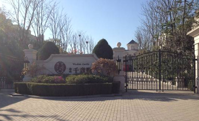 記者走訪時為工作日下午,到達(dá)項目時,小區(qū)門口有保安站崗, 但并未詢問記者前往何處。進(jìn)入小區(qū),仿佛走進(jìn)歐式花園,環(huán)境清幽。花園內(nèi),偶爾見到幾名保潔人員在清掃落葉,澆灌樹木。