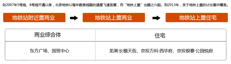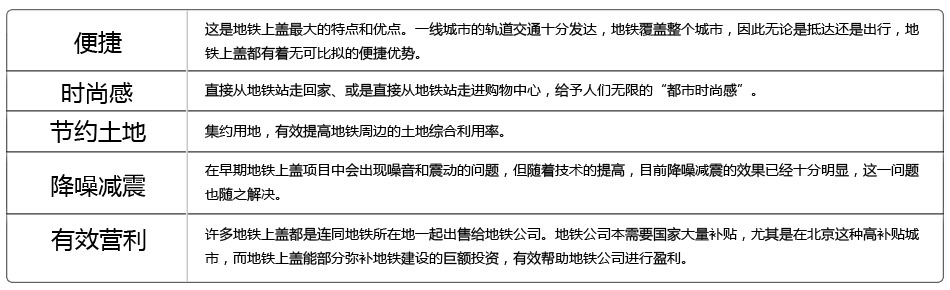 毫無疑問,地鐵上蓋這種物業(yè)形態(tài)是伴隨著城市里的軌道交通誕生的。在香港、東京、紐約等國際大都市中,這種物業(yè)形態(tài)已經(jīng)比較成熟。在東京,100個日營業(yè)額在10億日元以上規(guī)模的綜合性商業(yè)中心有95個和地鐵發(fā)生關(guān)系,軌道交通遍布周圍;在香港,60%以上的購物中心屬于地鐵上蓋物業(yè)。在發(fā)展早期,商業(yè)綜合體是地鐵上蓋一直寵愛的形式,而近年來,直接在地鐵停靠站上建設(shè)“空中住宅”也成為主流形式之一。未來,北京地鐵6號線、8號線和9號線的車輛段頂部都將進(jìn)行這樣的開發(fā)。