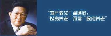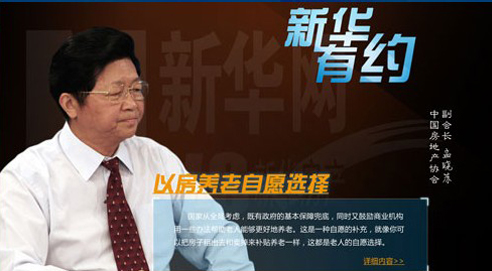 9月13日,國務院發(fā)布了《關于加快發(fā)展養(yǎng)老服務業(yè)的若干意見》 (以下簡稱《意見》,重點提出“開展老年人住房反向抵押養(yǎng)老保險試 點”,在網(wǎng)上引起熱議。9月26日,匯利基金董事長、幸福人壽原董事 長孟曉蘇教授做客由新華房產(chǎn)和新華網(wǎng)采訪部聯(lián)合推出的《新華有約》 欄目,與網(wǎng)友交流如何看待“以房養(yǎng)老”等熱點話題。