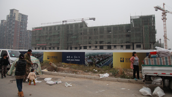 記者實(shí)探發(fā)現(xiàn),金隅瀾灣的樓盤已經(jīng)接近封頂,整個(gè)建筑的輪廓已經(jīng)能夠分辨,但外立面部分還沒有動(dòng)工,無法看出整體效果,小區(qū)內(nèi)的綠化部分也尚未開始。