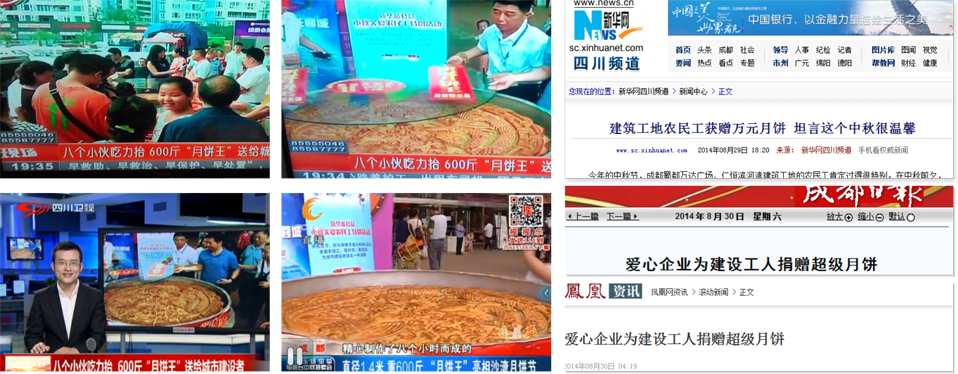11:30許,在仁恒濱河灣建筑工地活動板房前,諾大的月餅已經(jīng)擺放在農(nóng)民工兄弟代表面前。“我早就聽說你們要來給我們送月餅,但是沒想到這個月餅居然這么大!”來自廣西的小姚不禁感嘆道。據(jù)記者了解,小姚雖然今年只有29歲,但是已經(jīng)做建筑工人快10年了。2011年帶女兒一起來到成都,足足已有三年沒有和家人一起過中秋節(jié)了。