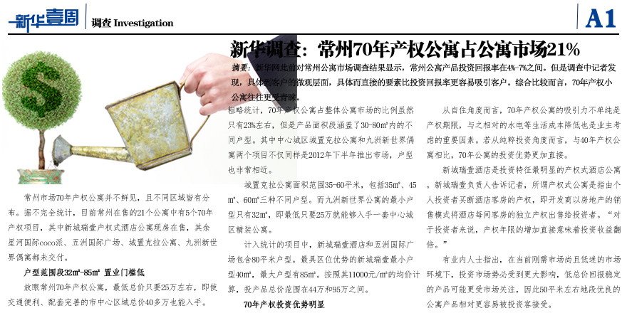 新華調查:常州70年產(chǎn)權公寓占公寓市場21%