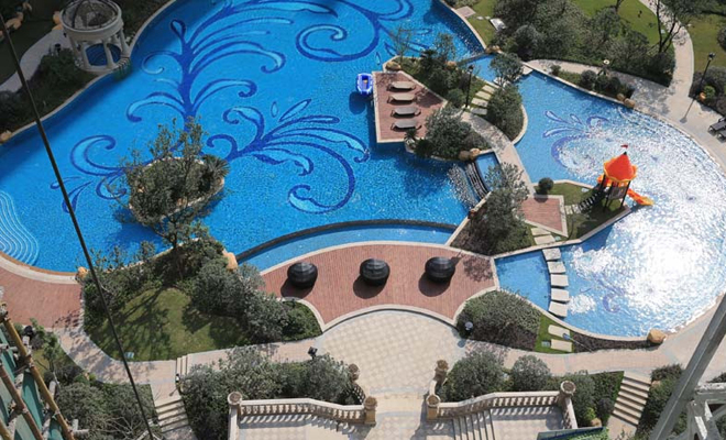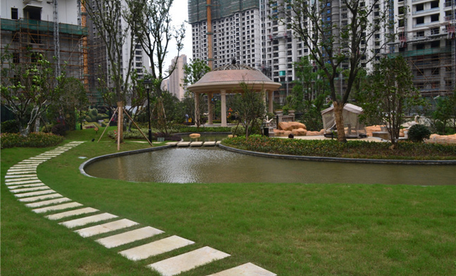據(jù)資料顯示,大名城綠化率為41.5%,樓間距為160米,小區(qū)內(nèi)部區(qū)規(guī)劃擁有中央疊瀑和中央泳池。目前,大名城東區(qū)1400㎡無(wú)邊界游泳池已經(jīng)開(kāi)放使用。記者實(shí)地走訪泳池周邊發(fā)現(xiàn),一名工作人員正在清理池內(nèi)雜物,該工作人員告訴記者,大名城工作人員會(huì)定時(shí)清理泳池及周邊景觀區(qū)域,保證小區(qū)內(nèi)部時(shí)刻干凈整潔??v觀東區(qū)整體景觀,池水清澈,周邊花卉植物、雕像噴泉錯(cuò)落有致,景觀整體格調(diào)高端。