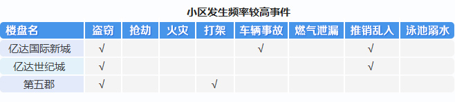 然而,綜合各項(xiàng)宜居指數(shù)來(lái)看,億達(dá)旗下的三個(gè)項(xiàng)目中有不同程度的盜竊、車輛事故及推銷亂入等安全事件發(fā)生,部分業(yè)主表示這些方面尚有改善空間。