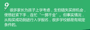 當(dāng)下,孩子是父母親的掌中寶,是父母親的希望,每一位父母親都希望自己的孩子處在最好的環(huán)境里,接受最好的教育,而入讀名校已成為當(dāng)下父母親最常討論的話題,都希望自己的孩子能跑先一步。而時(shí)下,不均的教育資源和城市人口越來(lái)越多使得買房子帶學(xué)位也成為一種時(shí)尚。"爸爸去哪兒"的熱播,為自己的孩子選一所名校更是提上議程。