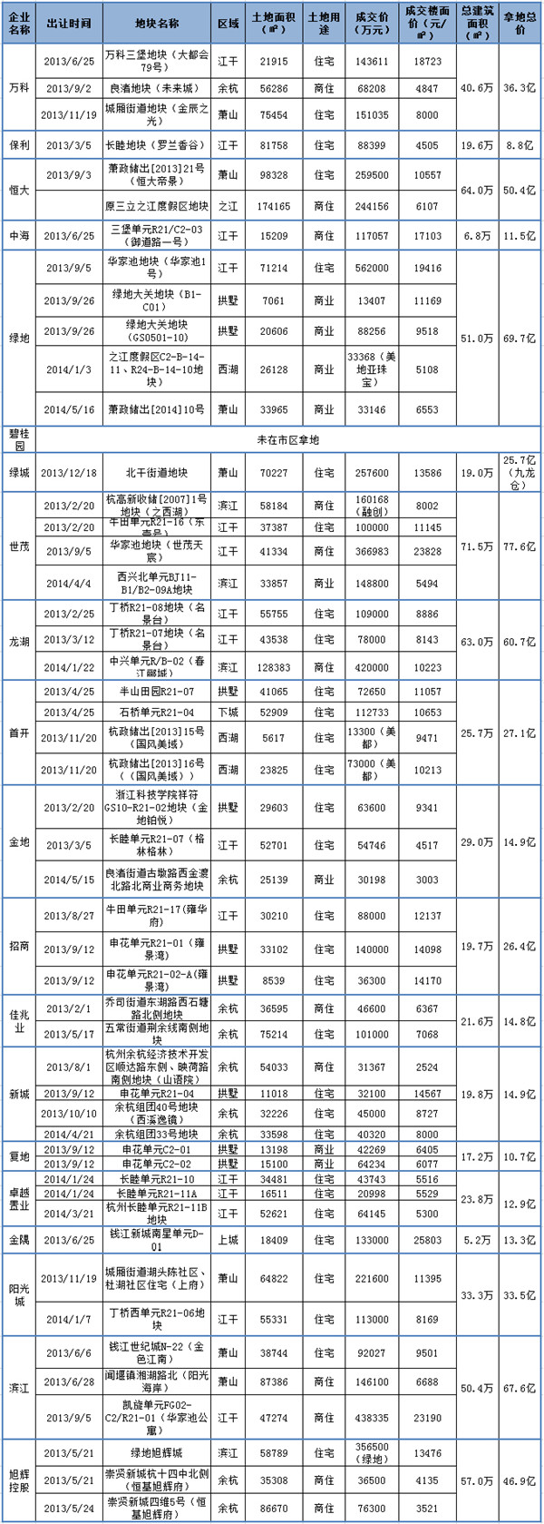 遠(yuǎn)洋自2007年入杭,競得原杭一棉地塊之后,只另做了九堡的遠(yuǎn)洋心里一個項目,之后就一直未見動靜;而曾經(jīng)一擲千金的九龍倉,最輝煌時候在杭州撒下5盤聯(lián)動,然而,這兩年土拍市場也鮮有建樹,偶有也是借著合作之名;更不用說偏居一偶的碧桂園,這4年來一直默默地耕耘著下沙項目,已經(jīng)明確表示不會在杭州市區(qū)拿地,而是轉(zhuǎn)向了桐廬等周邊縣市。【詳細(xì)】