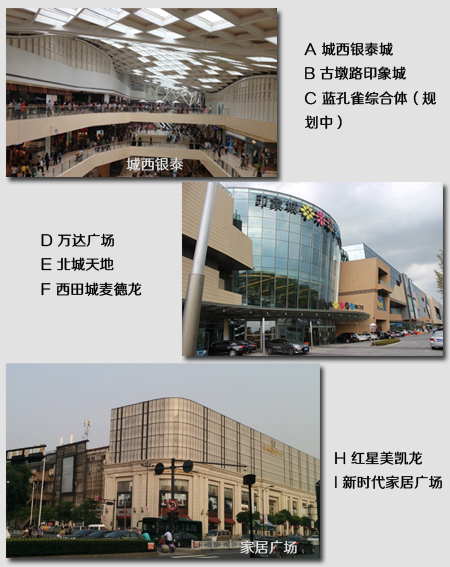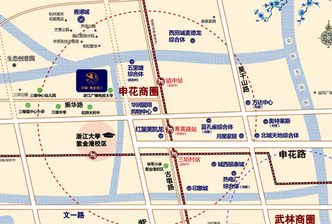 以中旅紫金名門為圓心,5公里范圍內(nèi)有城西銀泰城、古墩路印象城、樂購藍(lán)鉆天成店、藍(lán)孔雀綜合體、西田城麥德龍,以及萬達(dá)廣場、熱電廠綜合體、華潤購物中心等多個(gè)商業(yè)綜合體。