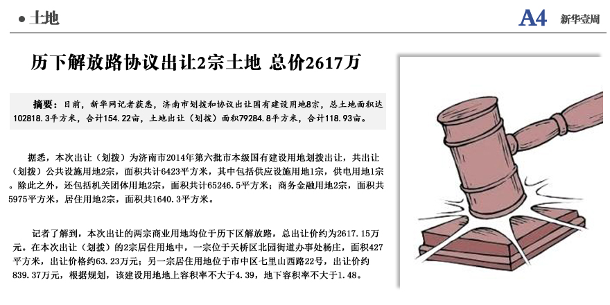歷下解放路出讓2宗土地 總價(jià)2617萬(wàn)