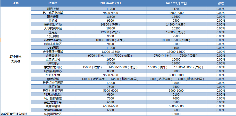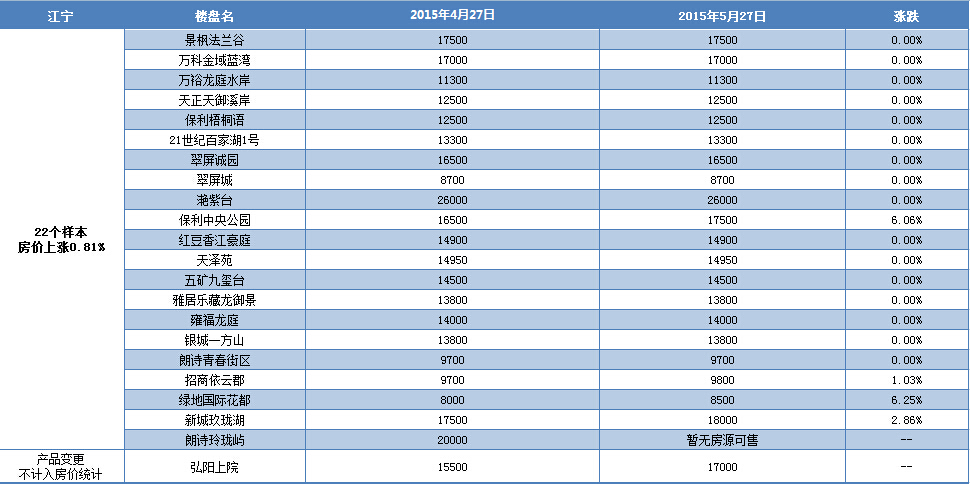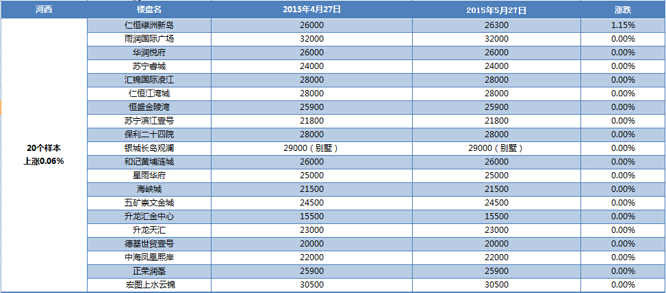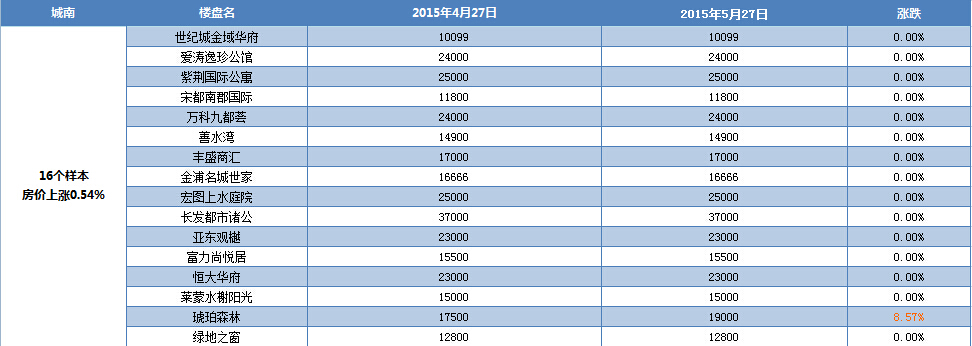 新華房產統(tǒng)計發(fā)現,2015年5月南京樓市八大板塊中,河西、城南、城東、江寧房價出現小幅上漲,其余板塊房價無變動。綜合結果,5月房價環(huán)比微漲0.43%。 [詳細]