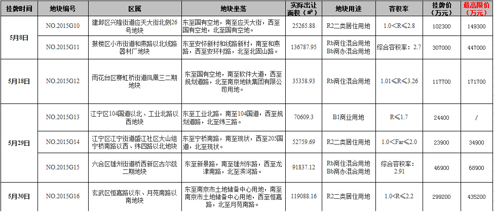 5月南京土地市場吸金20.28億元 較去年同期增長774.13%