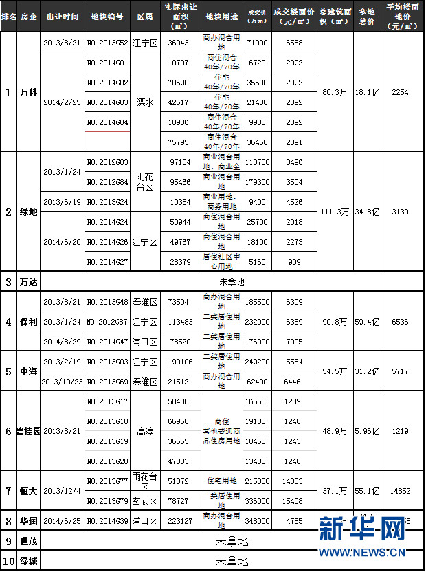 土地儲備對房企而言至關(guān)重要,新華網(wǎng)記者調(diào)查統(tǒng)計(jì)了全國十強(qiáng)房企自2013年以來在南京的拿地情況,發(fā)現(xiàn)對于南京市場,十強(qiáng)房企表現(xiàn)不同,有如綠地、保利激進(jìn)拿地的,還有如萬達(dá)、綠城一地未拿。【詳細(xì)】