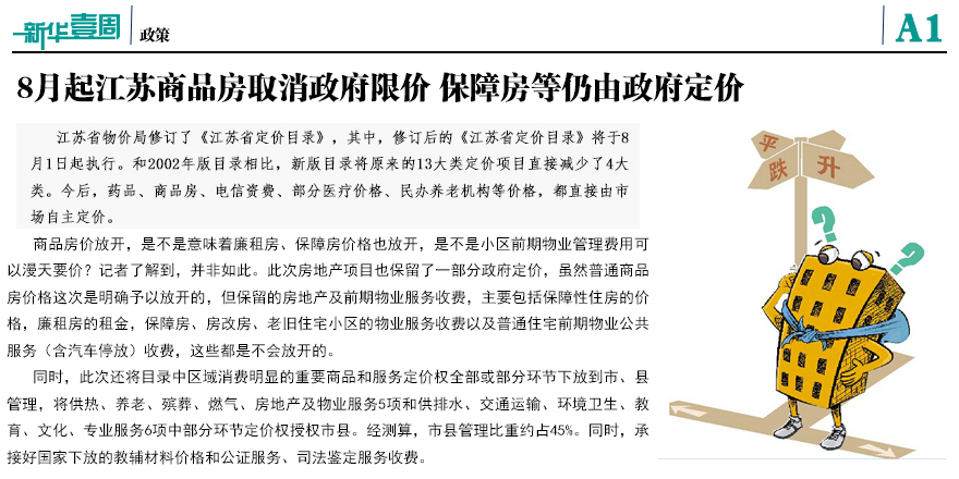 8月起江蘇商品房取消政府限價