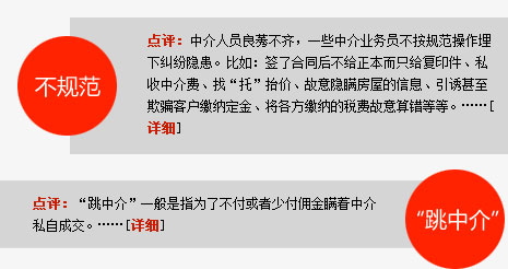 二手房買賣是一種特殊的商品交易,因其金額大及交易周期長及交易流程專業(yè)復(fù)雜(簽約、貸款、評估、過戶、還貸、付款、交房等),一不小心就容易出現(xiàn)糾紛,買賣雙方最好還是要通過房屋中介來買賣,不過在選擇房屋中介公司和房產(chǎn)經(jīng)紀(jì)人的時候,消費者可要多留個心眼?!璠詳細(xì)]