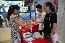 一位女士買下一幅書法作品