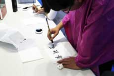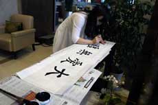 志愿者正在完成書法作品