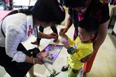 一位小朋友用零花錢買下義賣商品