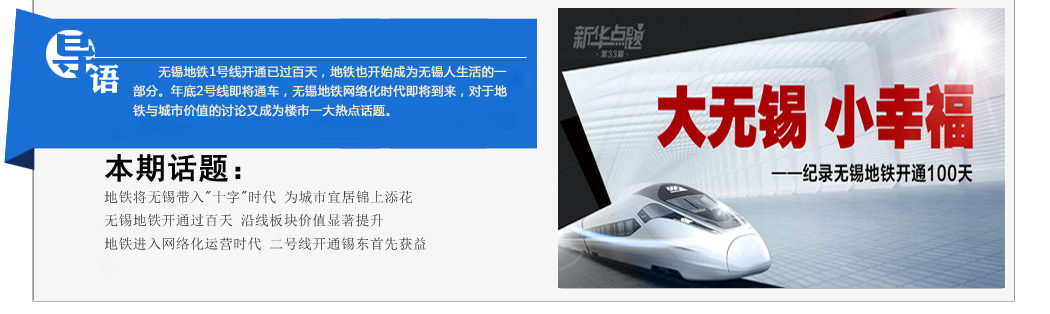 無錫地鐵1號(hào)線開通已過百天,地鐵也開始成為無錫人生活的一部分。年底2號(hào)線即將通車,無錫地鐵網(wǎng)絡(luò)化時(shí)代即將到來,對(duì)于地鐵與城市價(jià)值的討論又成為樓市一大熱點(diǎn)話題。
