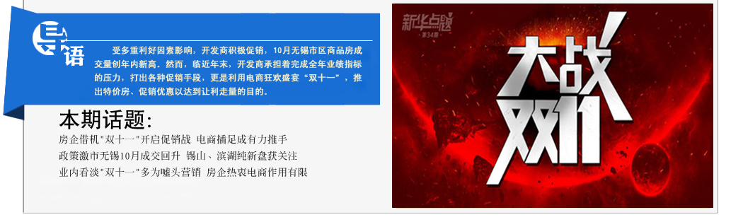11月對(duì)于房地產(chǎn)市場(chǎng)而言似乎并不是個(gè)傳統(tǒng)旺季,然而借著“雙十一”全民購物狂歡的熱潮,這個(gè)11月也擺脫了傳統(tǒng)淡旺季的慣性,開發(fā)商延房地產(chǎn)市場(chǎng)回暖的勢(shì)頭,加大宣傳與優(yōu)惠力度,為完成年終業(yè)績指標(biāo)再度沖刺。