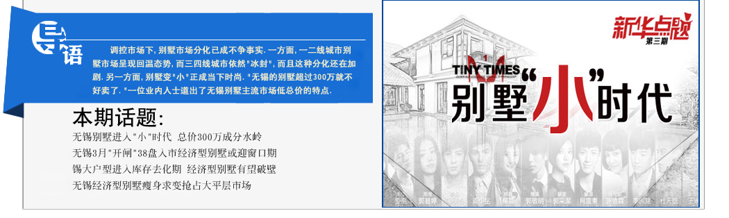 無錫別墅進入"小"時代總價300萬成分水嶺