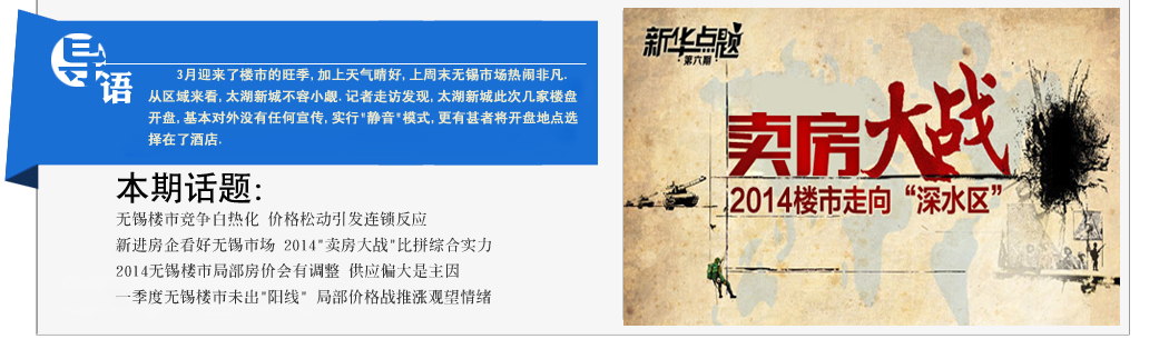 3月迎來了樓市的旺季,加上天氣晴好,上周末無錫市場熱鬧非凡。從區(qū)域來看,本周末太湖新城不容小覷,萬科信成道、綠城玉蘭花園、蘇寧悅城等樓盤均有開盤加推動(dòng)作。記者走訪發(fā)現(xiàn),太湖新城此次幾家樓盤開盤,基本對(duì)外沒有任何宣傳,實(shí)行“靜音”模式,更有甚者將開盤地點(diǎn)選擇在了酒店。