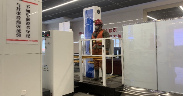 圖為礦工下井前,通過智慧系統(tǒng)進行檢測