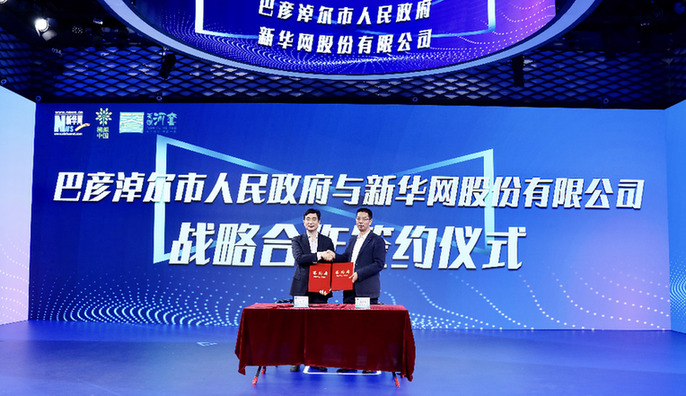 5月27日,巴彥淖爾市人民政府與新華網(wǎng)戰(zhàn)略合作簽約儀式在京舉行。圖為簽約儀式現(xiàn)場(chǎng)。新華網(wǎng) 張 斌 攝
