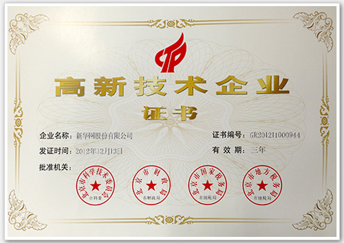 新華網獲頒國家高新技術企業(yè)證書,成為首家獲得高新技術企業(yè)認定的中央重點新聞網站。