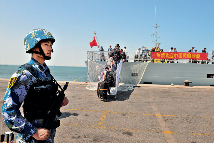 ????In line with the instructions of Chinese President Xi Jinping and the Central Military Commission, the 19th escort task force of the navy – comprising the frigates Linyi, Weifang and Weishan – evacuated Chinese nationals from Yemen from March 29 to April 6. A total of 897 people – 618 Chinese nationals and 279 people from 15 other countries – were evacuated. It was the first time a Chinese naval fleet had anchored in a foreign port to carry out an evacuation, and the first time the Chinese government had ordered the evacuation of foreigners from a high-risk region.