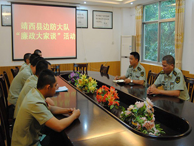 廣西百色靖西邊防大隊官兵開展“廉政大家談”活動?