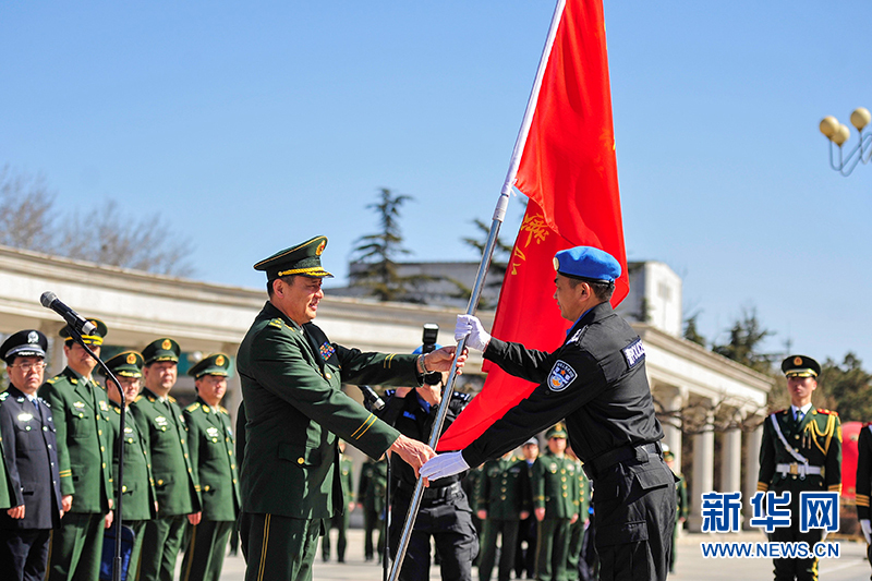 ????10日,中國第四支赴利比里亞維和警察防暴隊在中國維和警察培訓(xùn)中心舉行出征儀式。公安部邊防管理局局長陳定武為防暴隊授旗并講話。中國人民武裝警察部隊學(xué)院院長馬金旗、政委李樂民,公安部邊防管理局副局長徐寬宥,公安部國際合作局副局長徐乃剛,公安部維和警察領(lǐng)導(dǎo)小組成員單位負責(zé)人等出席出征儀式,為防暴隊送行。
