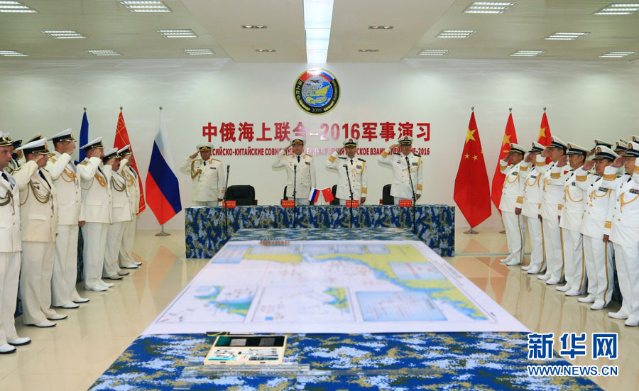 ????9月13日,中俄“海上聯(lián)合—2016”軍事演習(xí)開幕式在演習(xí)導(dǎo)演部舉行,中方總導(dǎo)演、中國海軍副司令員王海和俄方總導(dǎo)演、俄羅斯海軍副司令費(fèi)多堅(jiān)科夫共同宣布演習(xí)開始。