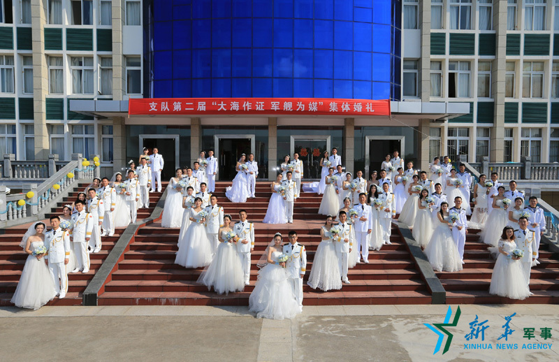 ????新華社杭州9月24日電(林健、方思航、史奎吉)9月24日,農(nóng)歷八月廿四,浙江舟山某軍港處處洋溢著喜慶,東海艦隊(duì)某驅(qū)逐艦支隊(duì)在這里為35對(duì)新人,舉行集體婚禮。這是這個(gè)支隊(duì)舉辦的第二屆“大海作證·軍艦為媒”主題集體婚禮。